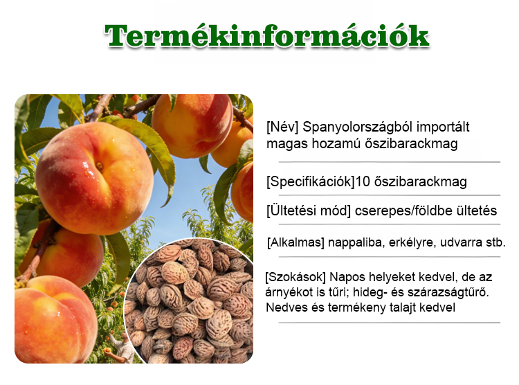 【Erős és egészséges testet építs】Spanyol import magas hozamú őszibarackfa magok