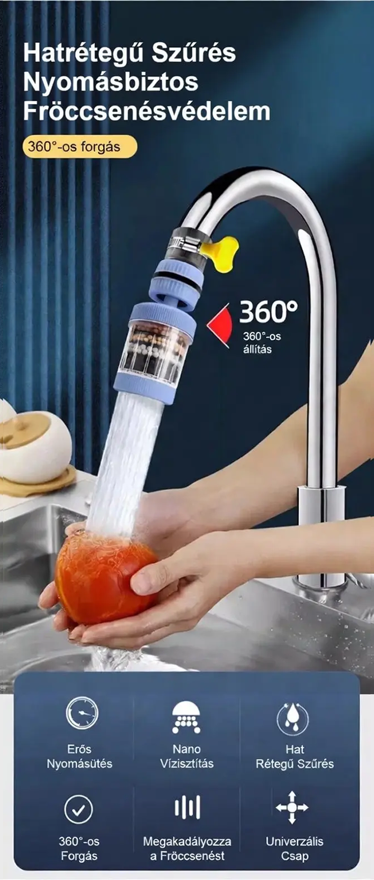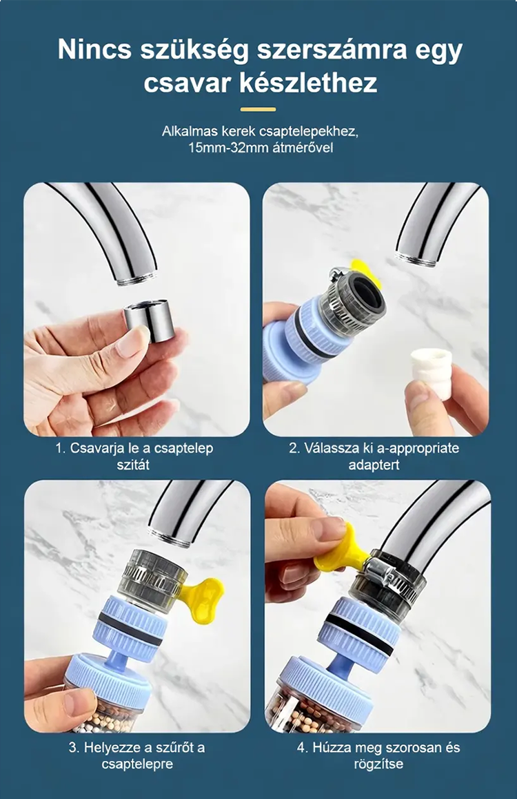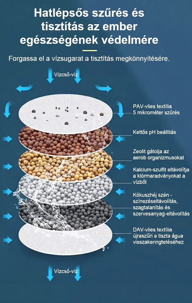 Hat rétegű háztartási csapvízszűrő fej
