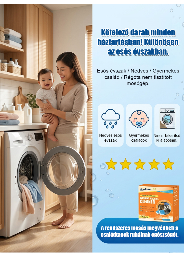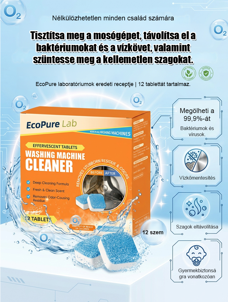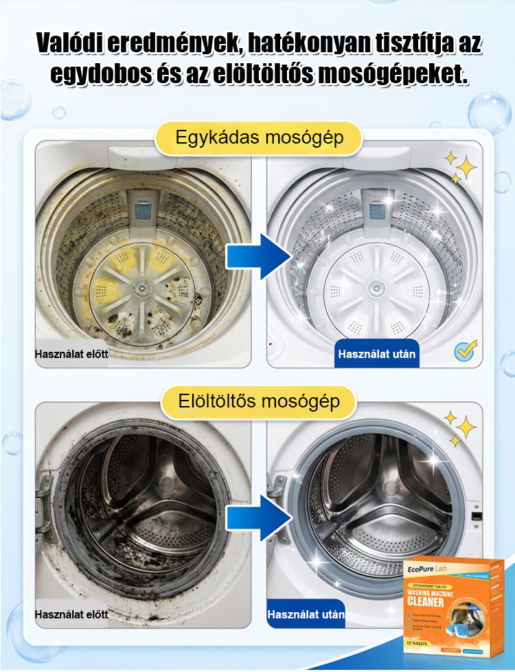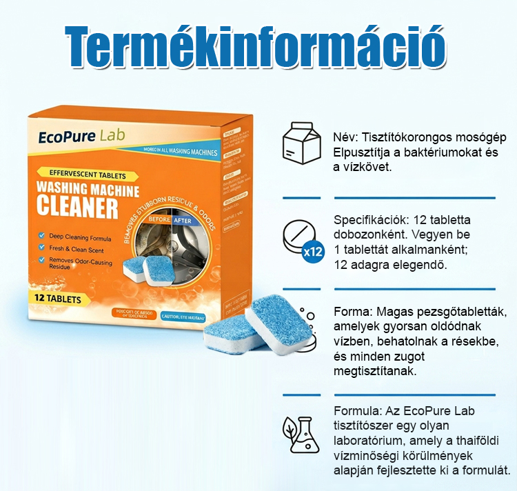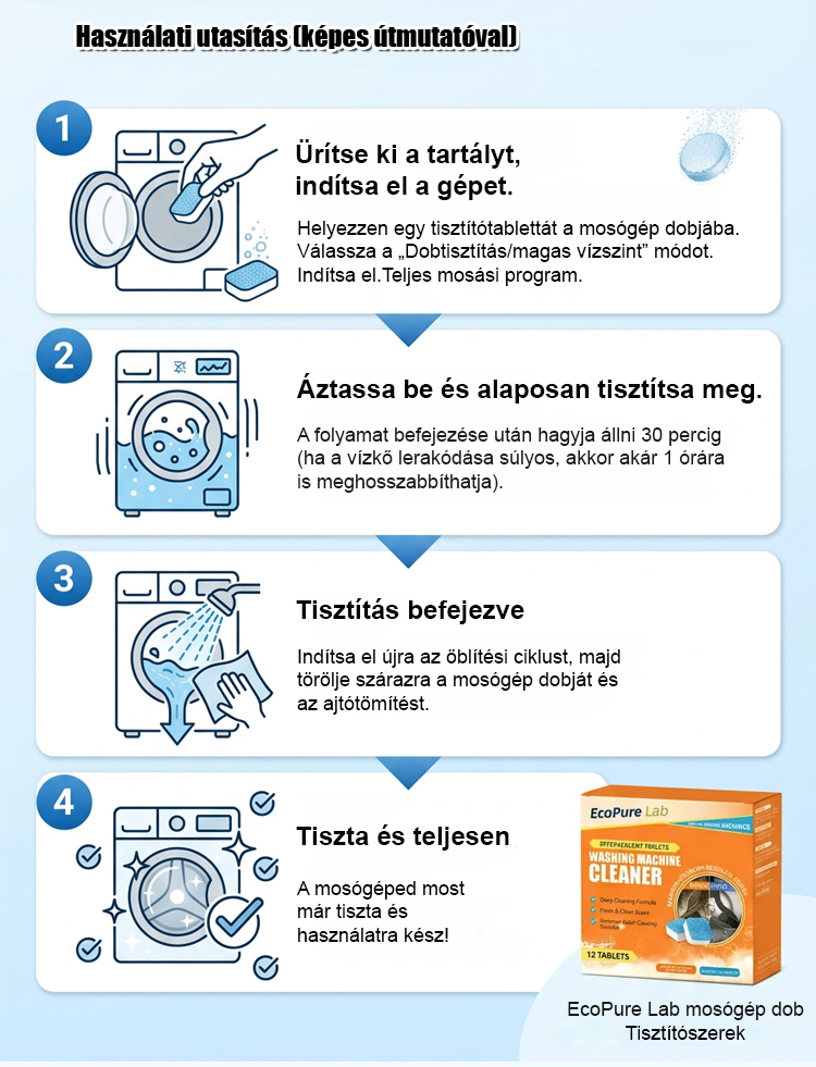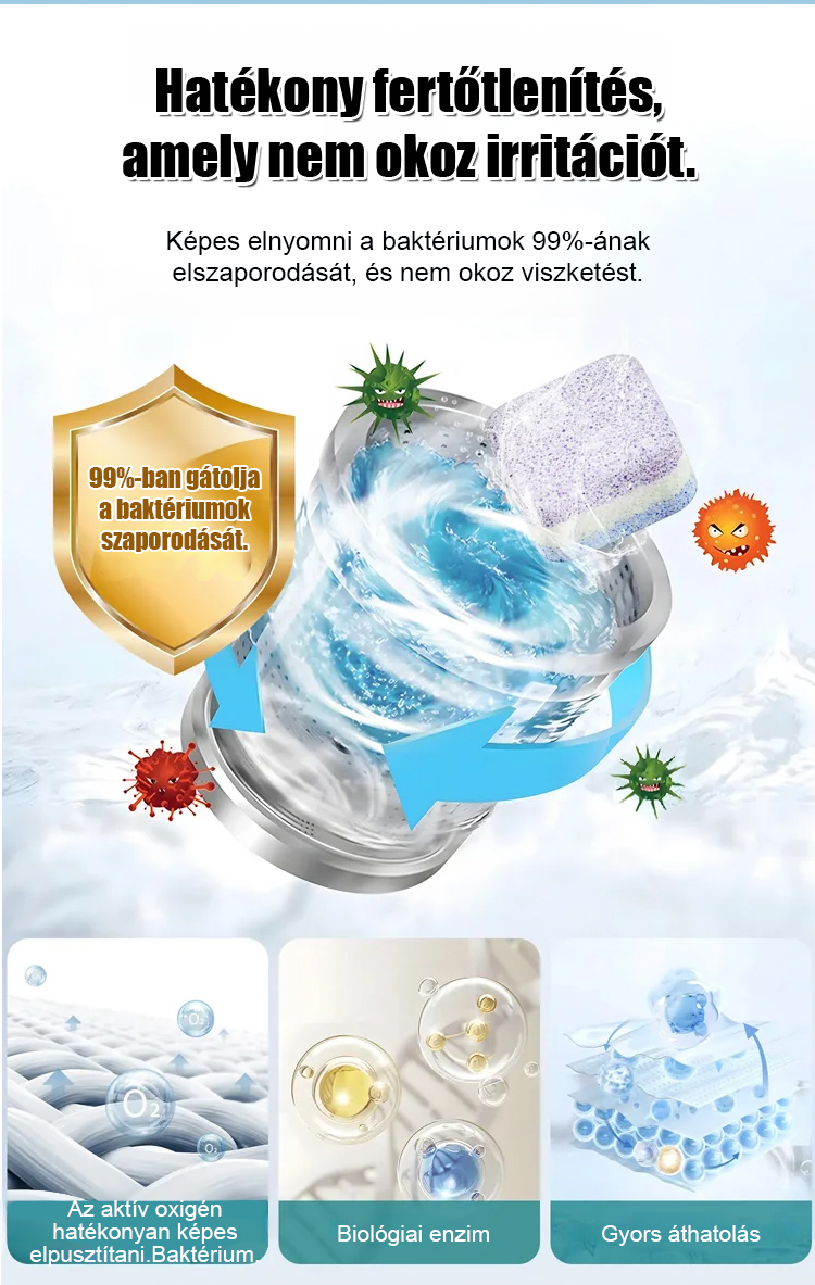 Fertőtlenítés: Vízkőmentesítő mosógép tisztító tabletta.