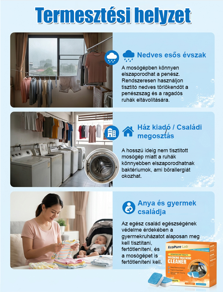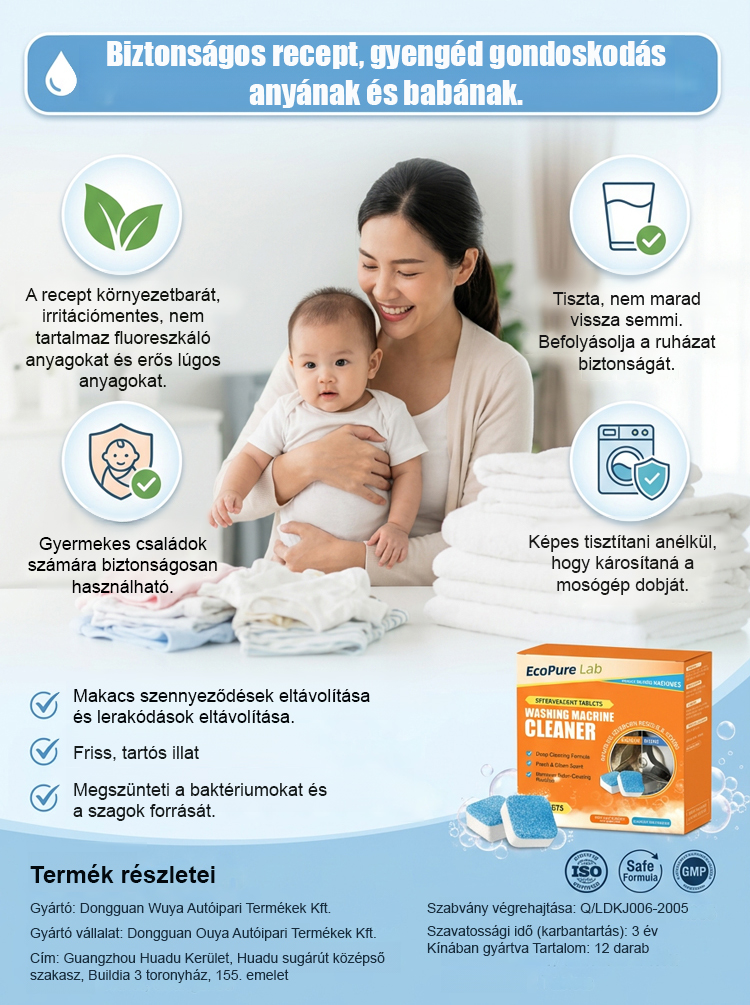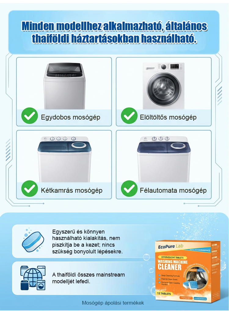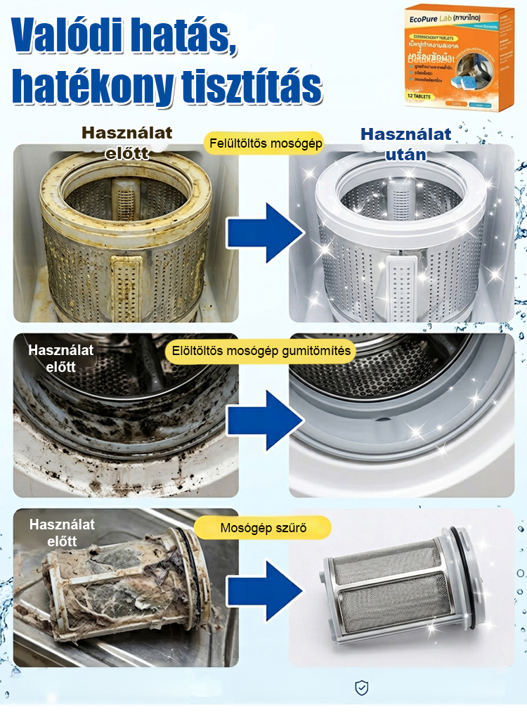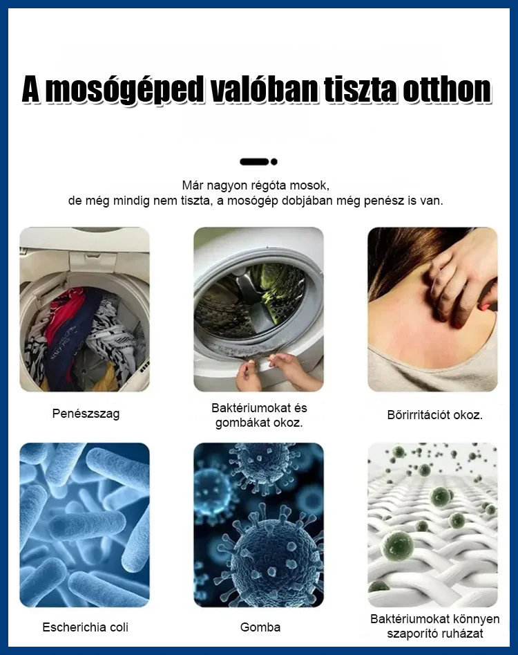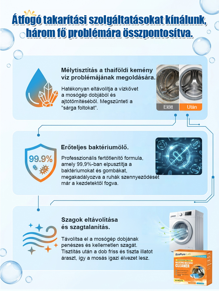 Fertőtlenítés: Vízkőmentesítő mosógép tisztító tabletta.